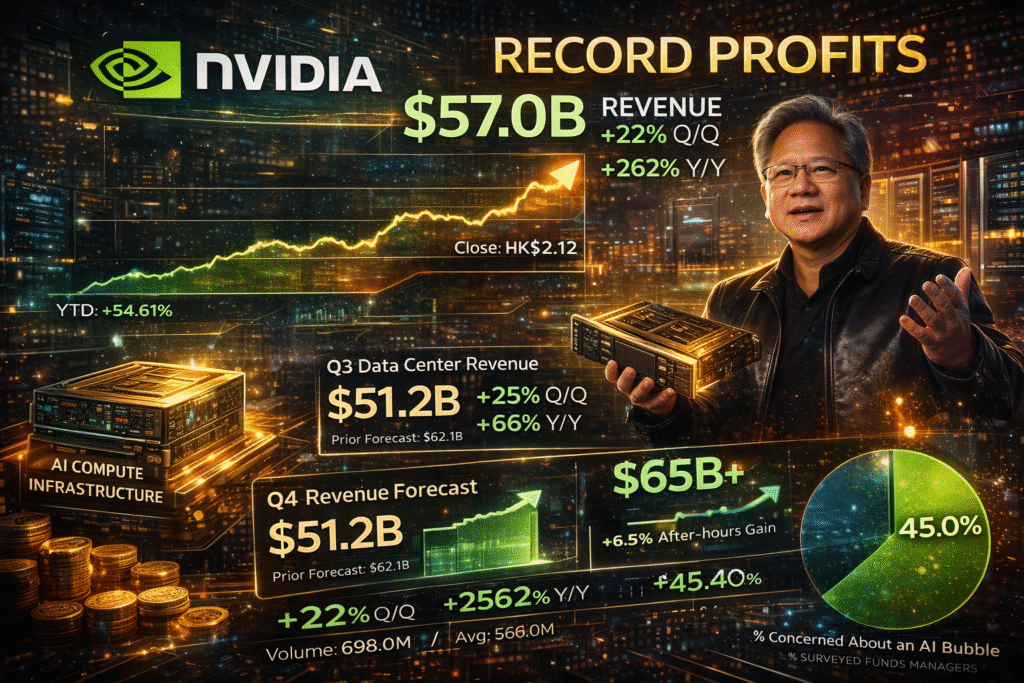 В третьем квартале фискального года Nvidia зафиксировала рекордную выручку в 57,0 миллиарда долларов, что на 22% больше, чем в предыдущем квартале, и на 62% больше по сравнению с тем же периодом годом ранее. Доходы подразделения дата-центров составили 51,2 миллиарда долларов, прибавив 25% к предыдущему кварталу и 66% в годовом выражении.